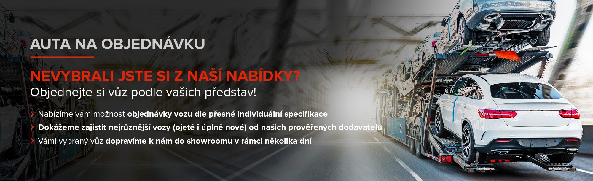 Máte jasnou představu o svém budoucím voze, ale žádný takový jste v naší nabídce nenašli? Nevadí! V případě, že si totiž nevyberete z naší aktuální nabídky, nabízíme vám možnost objednávky vozu dle přesné individuální specifikace. Dokážeme zajistit nejrůznější vozy (ojeté i úplně nové) od našich prověřených dodavatelů (v ČR i zahraničí) a dopravit je až k nám do showroomu v rámci několika dní. Objednat si vysněné auto na zakázku nebylo nikdy snazší!